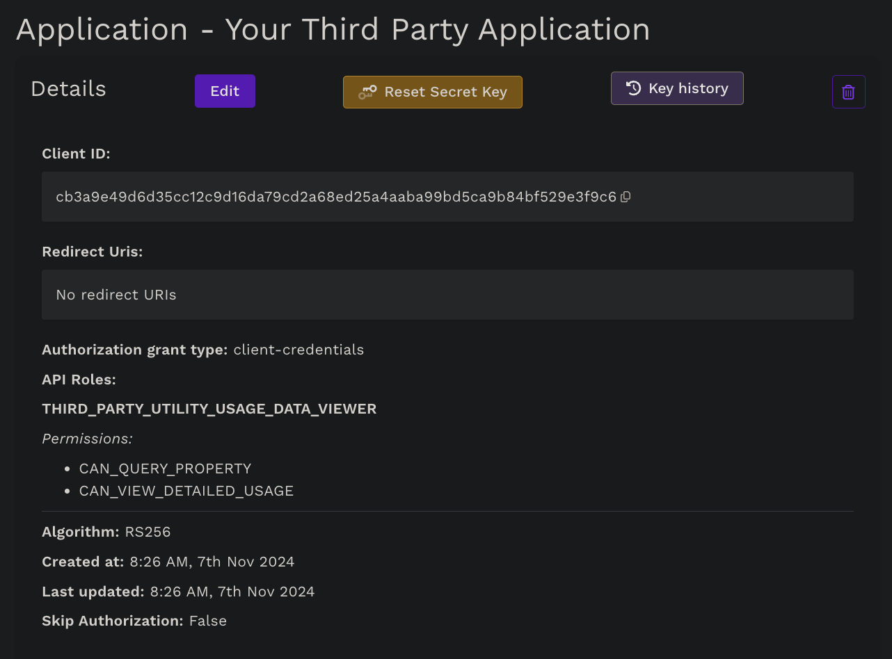 THIRD_PARTY_UTILITY_USAGE_DATA_VIEWERhas theCAN_VIEW_DETAILED_USAGEand theCAN_QUERY_PROPERTYpermissions associated with it. This API Role and these permissions are Kraken core objects, and your Kraken will already be able to use them; however, it's possible that your Kraken has not applied these permissions to this role yet. -